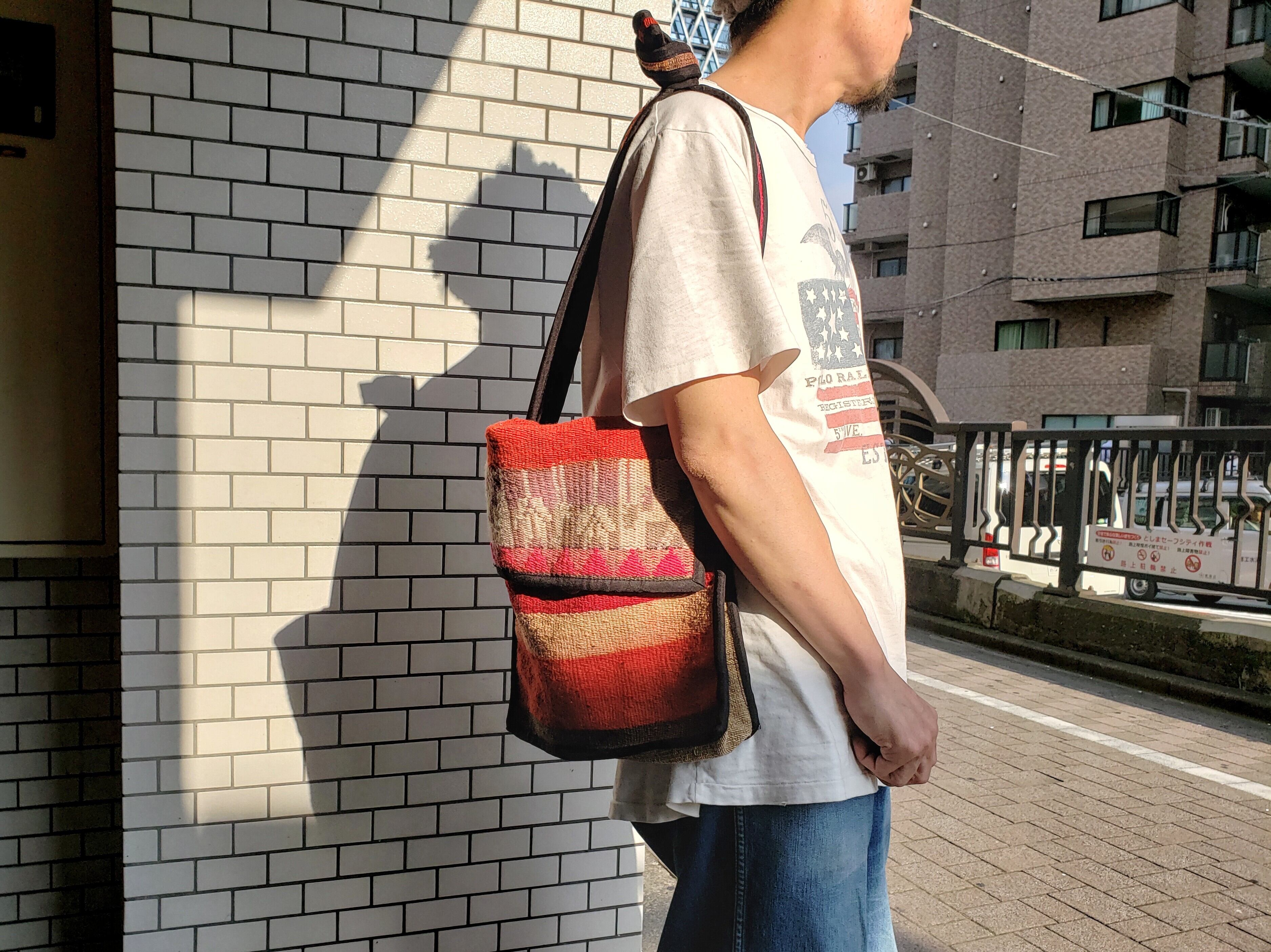 ハンドメイドのショルダーバッグ。