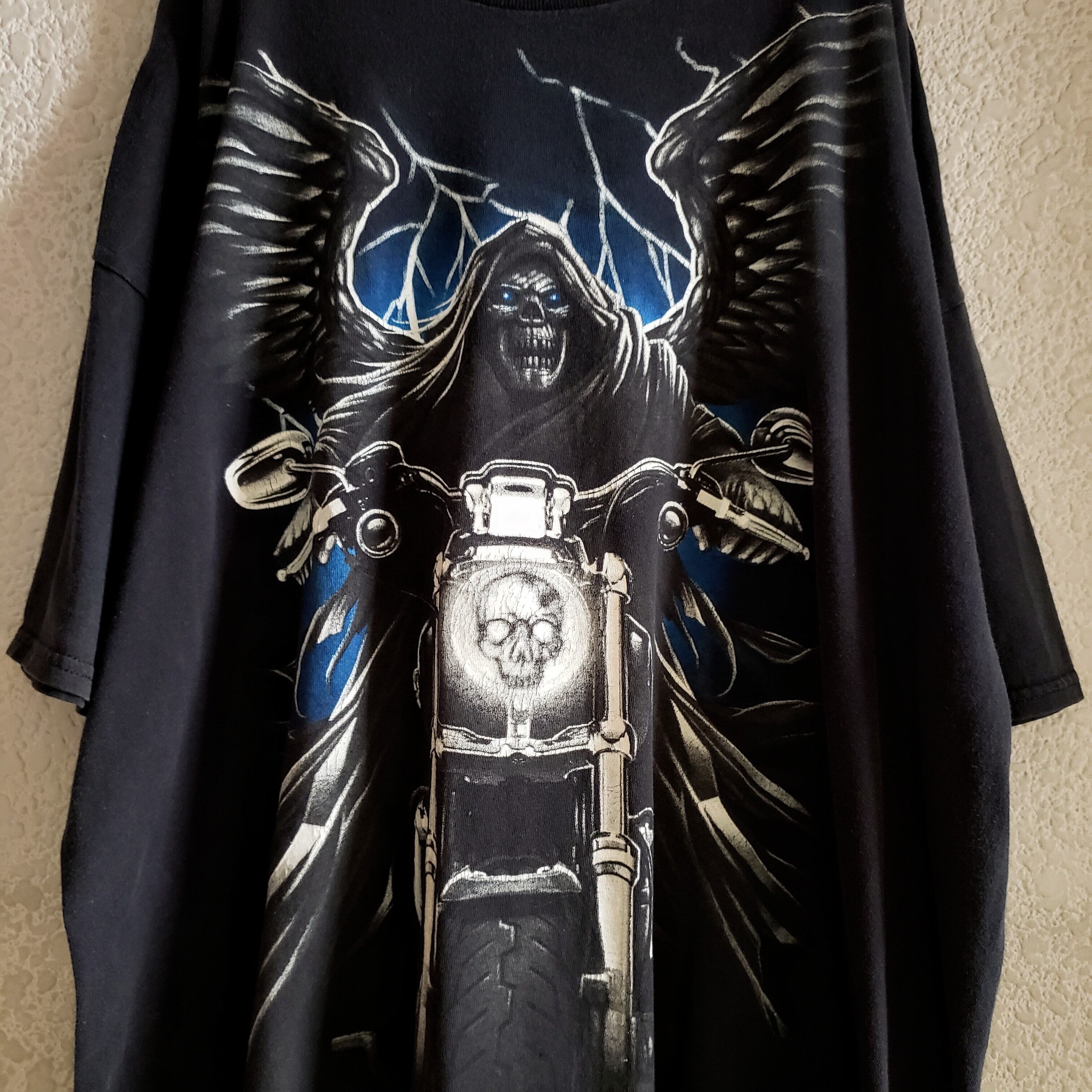 SKULL & BIKE Print T-shirt 古着 Tシャツ スカル