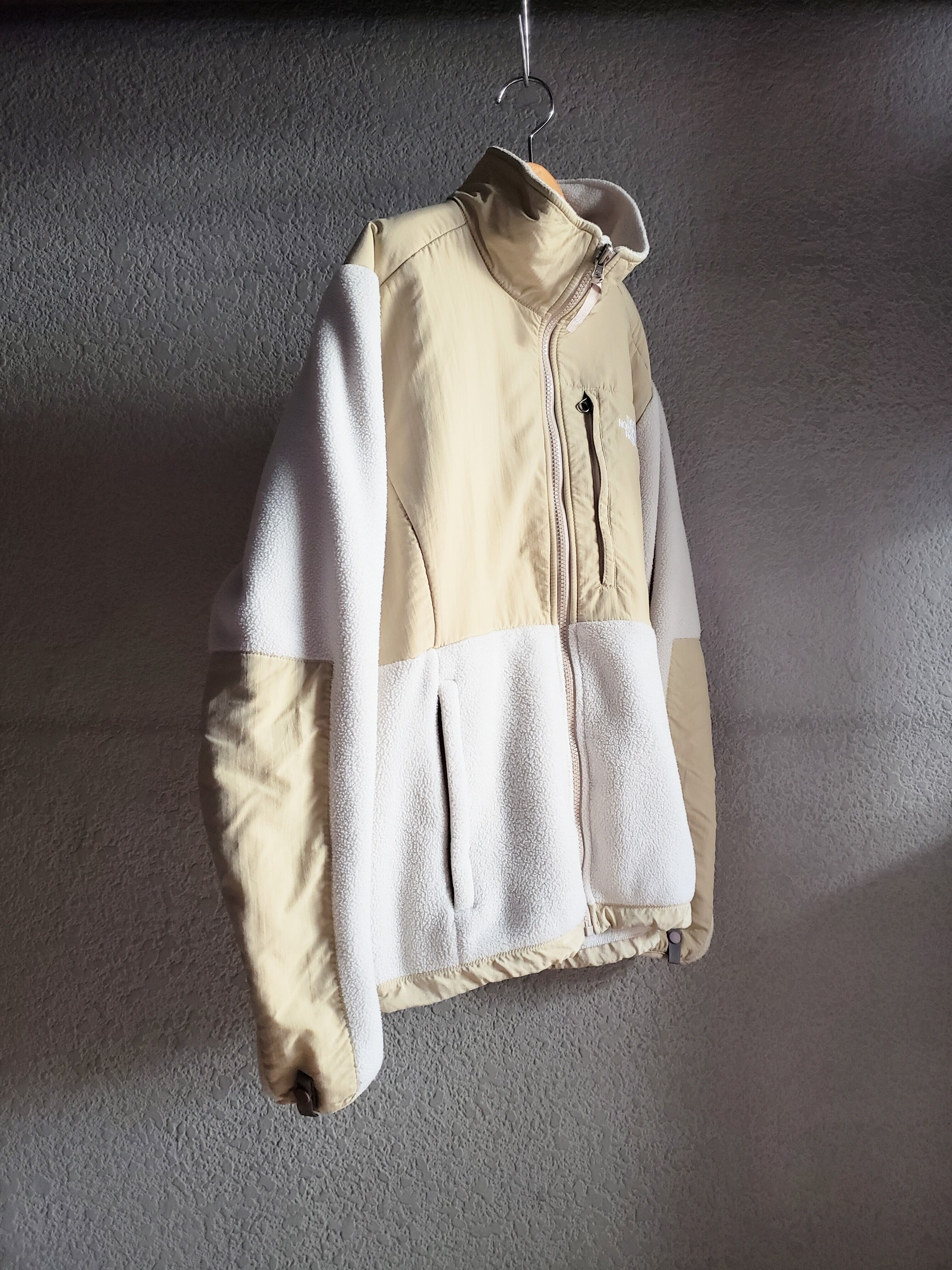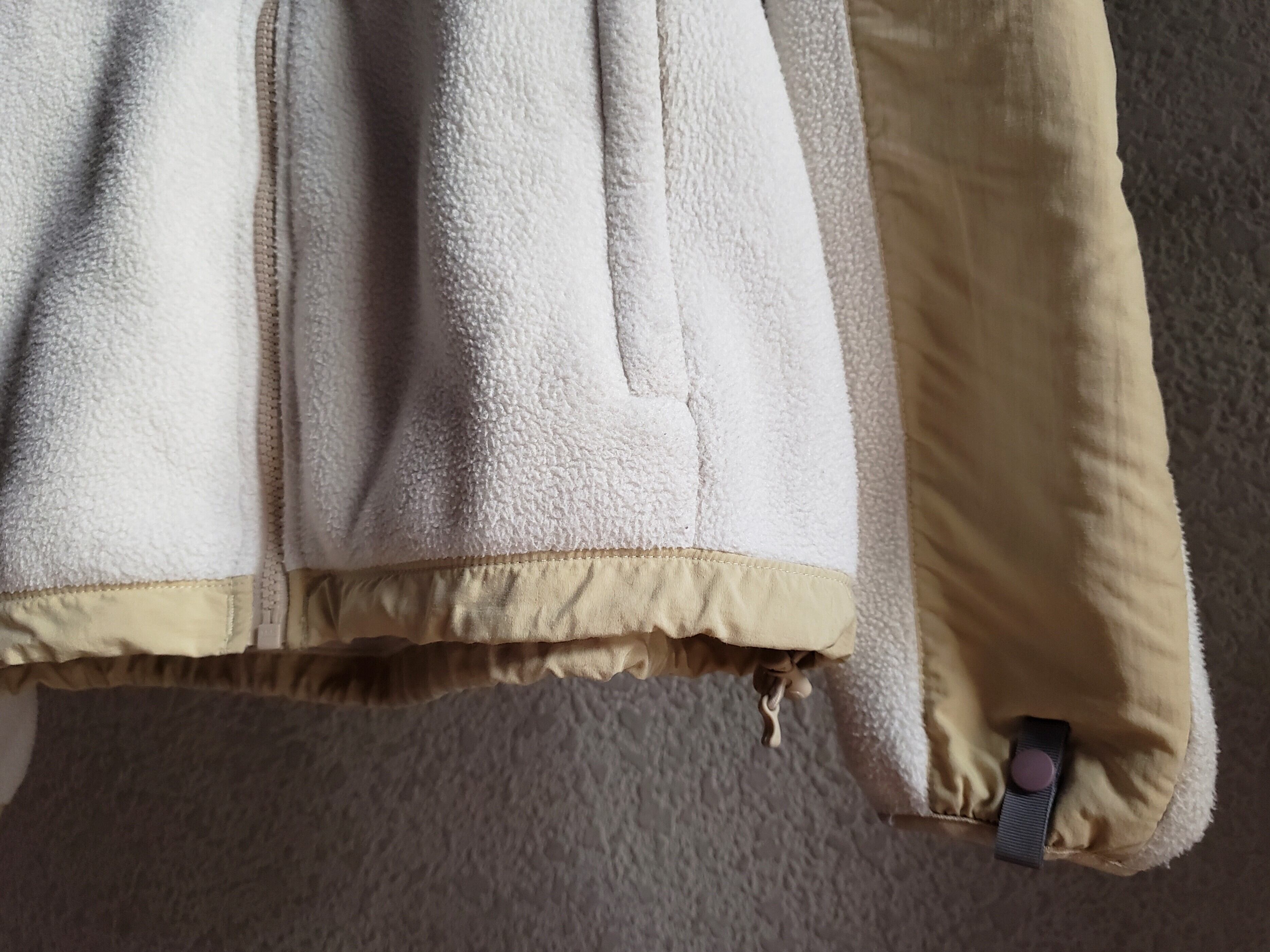 白いフリースとアイボリーのナイロンとのツートーンカラー。