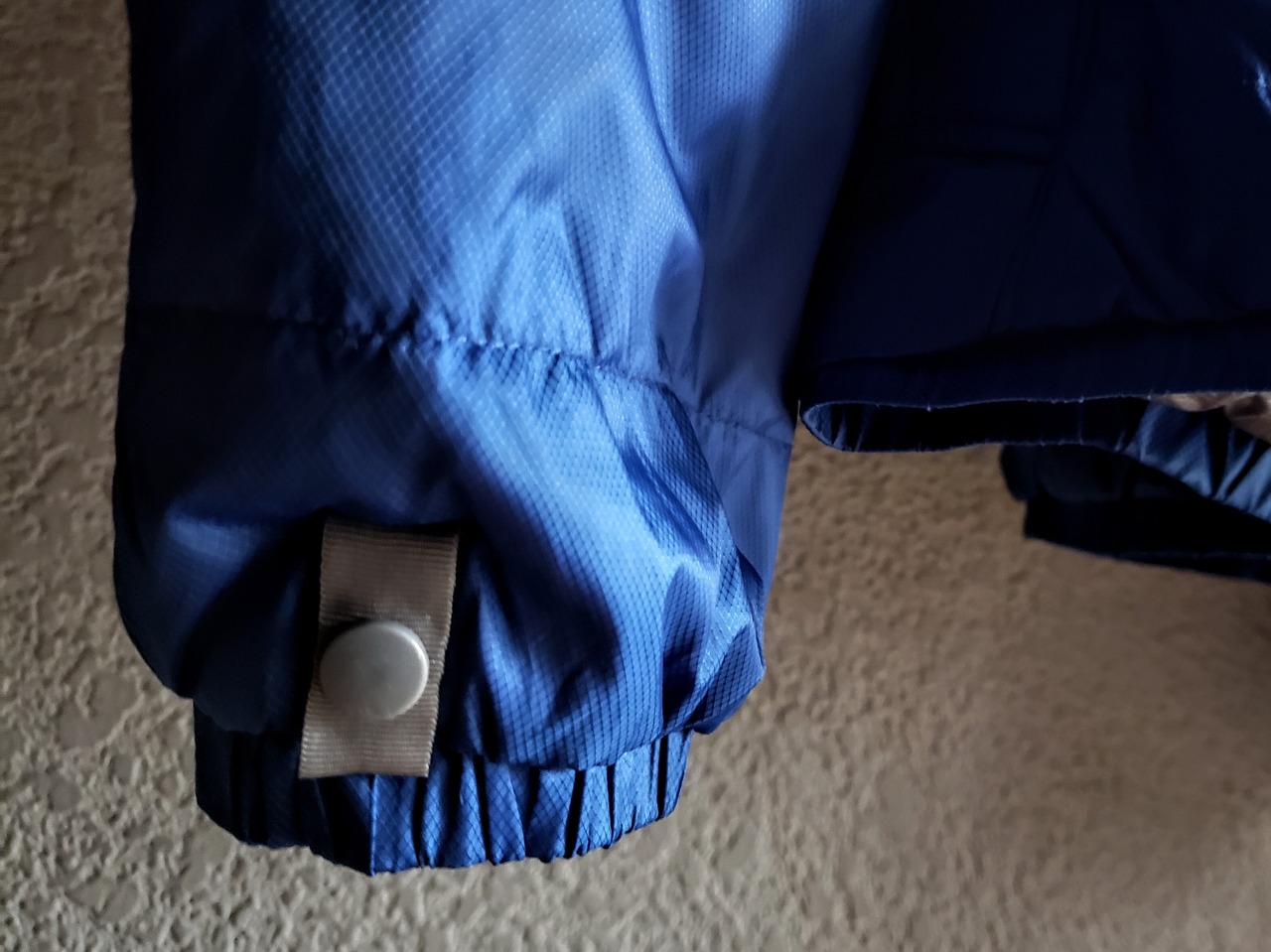 色は青。リップストップのような細かい格子柄。