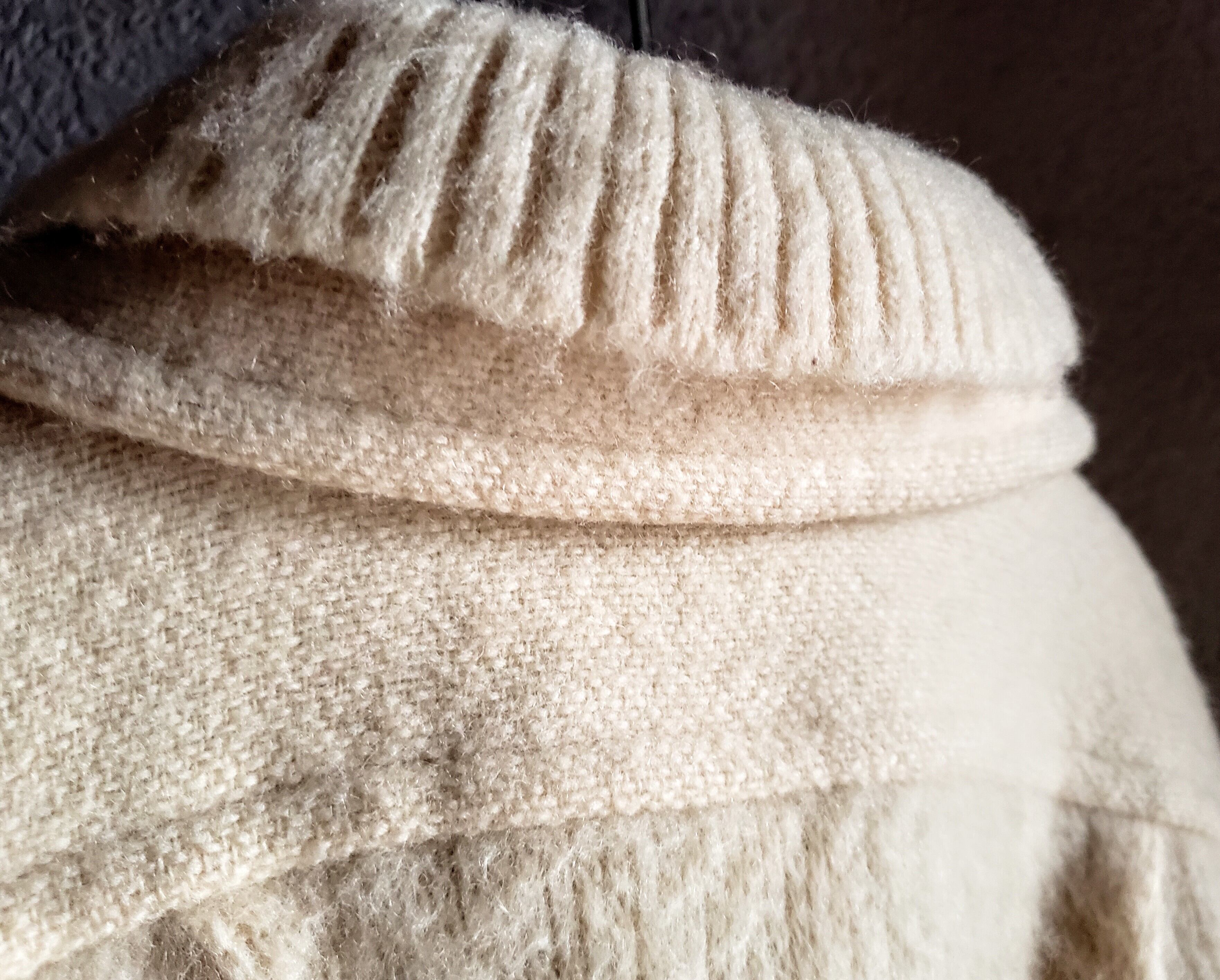 リブ編みの上にモヘアのような毛足のあるニット。