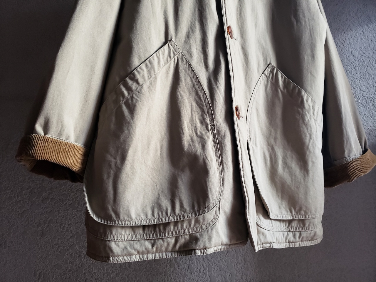 襟と袖口内側にコーデュロイ。