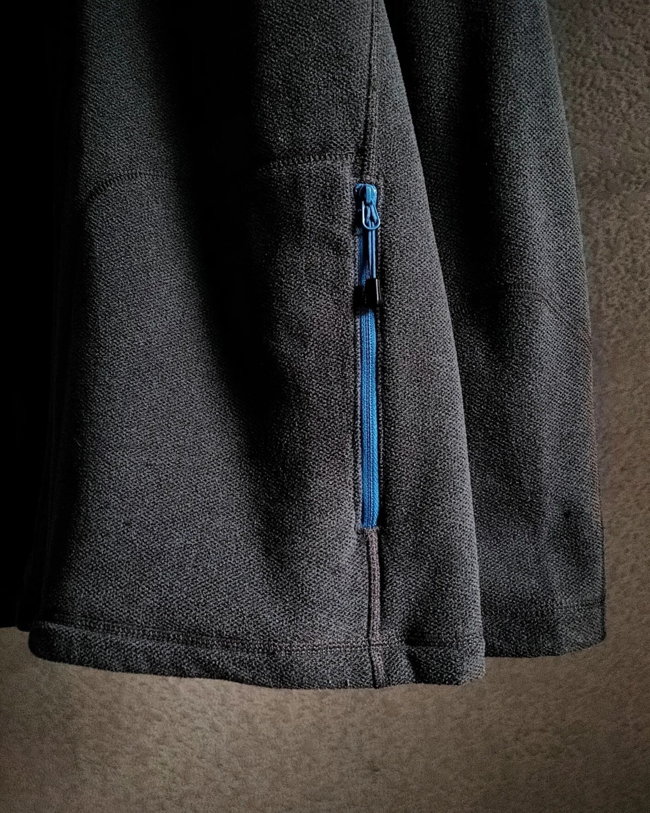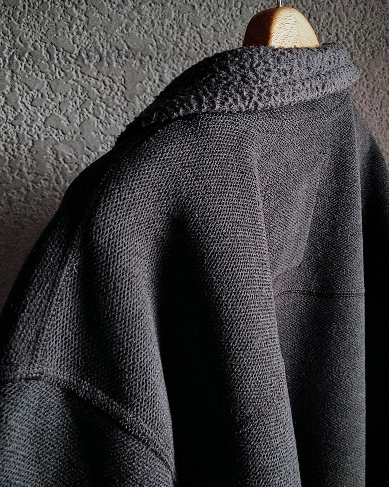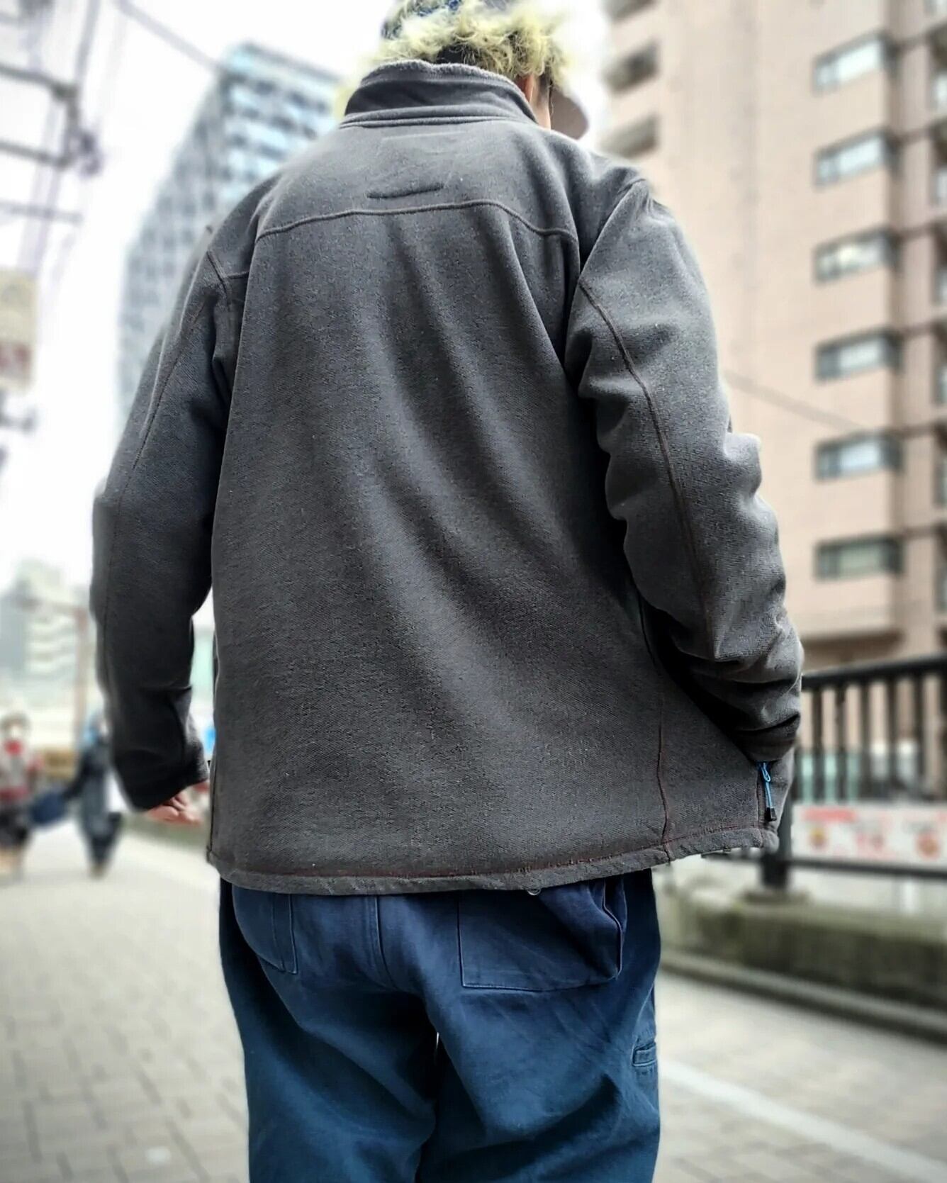裏側は見慣れたフリースの生地感ですが、表面は鹿の子の織りのような見た目であまり見かけない質感です。