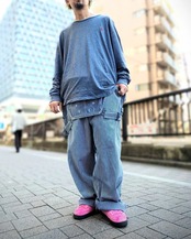 ウエストをベルトで締めてサスペンダーを垂らしてもいいでしょう。