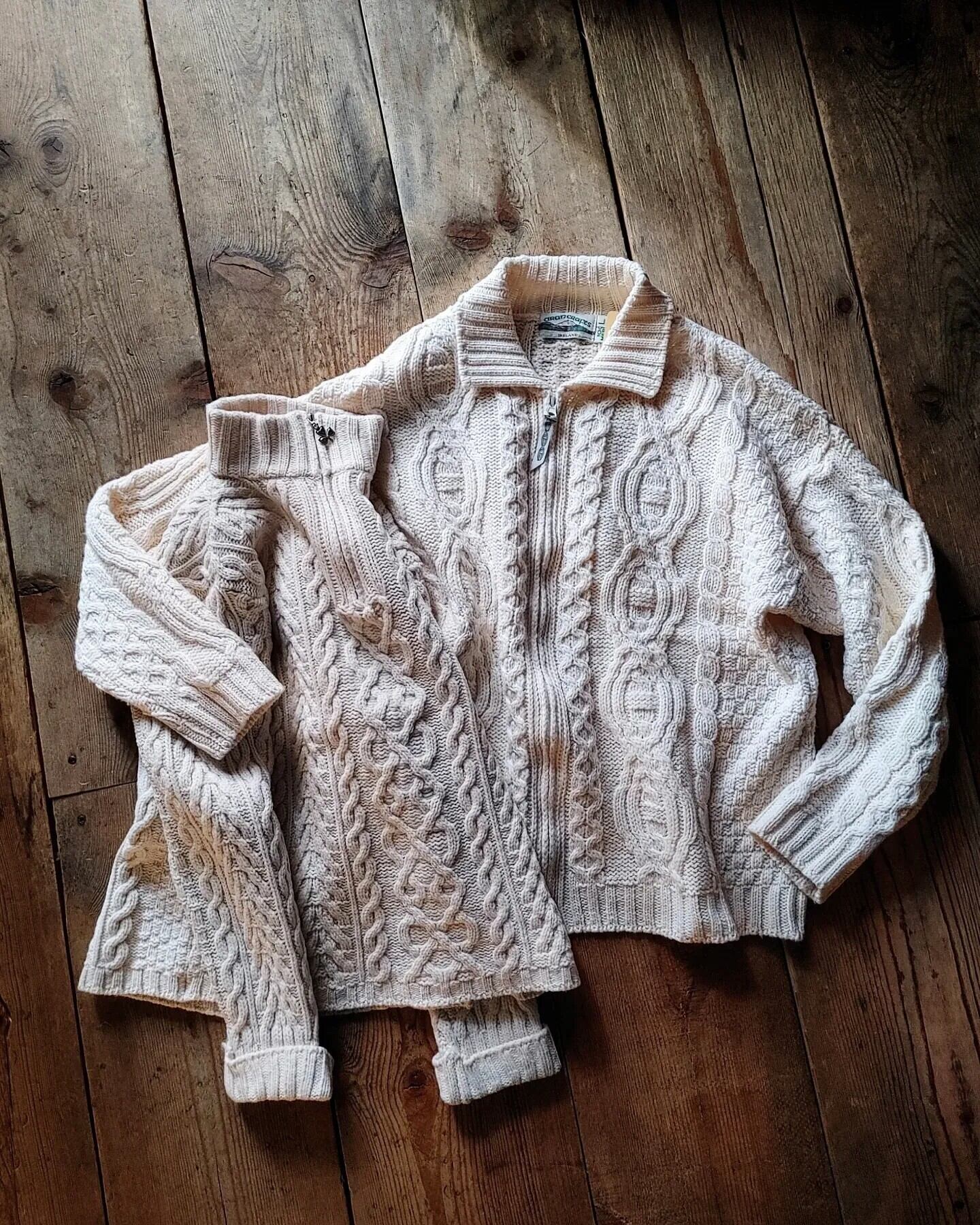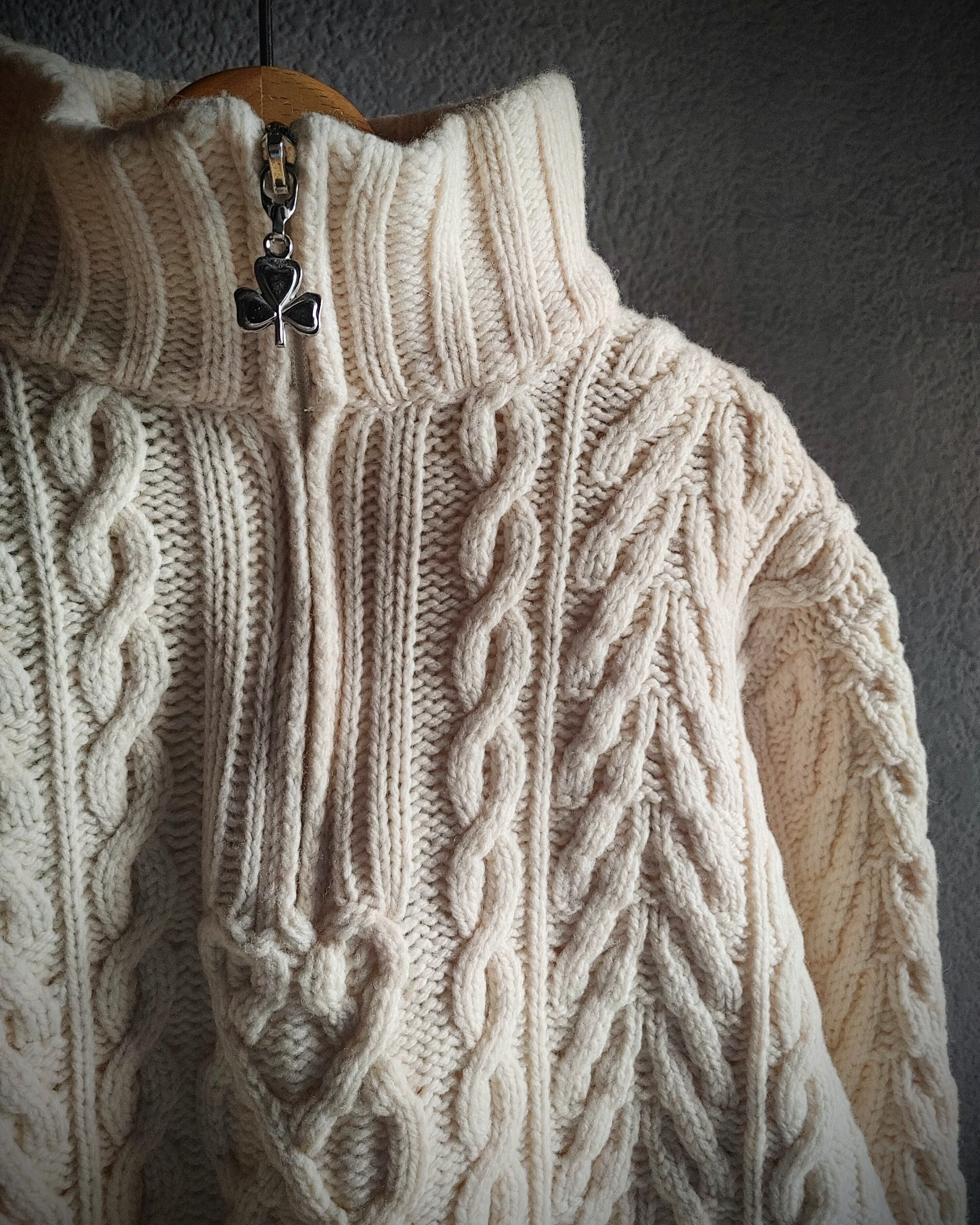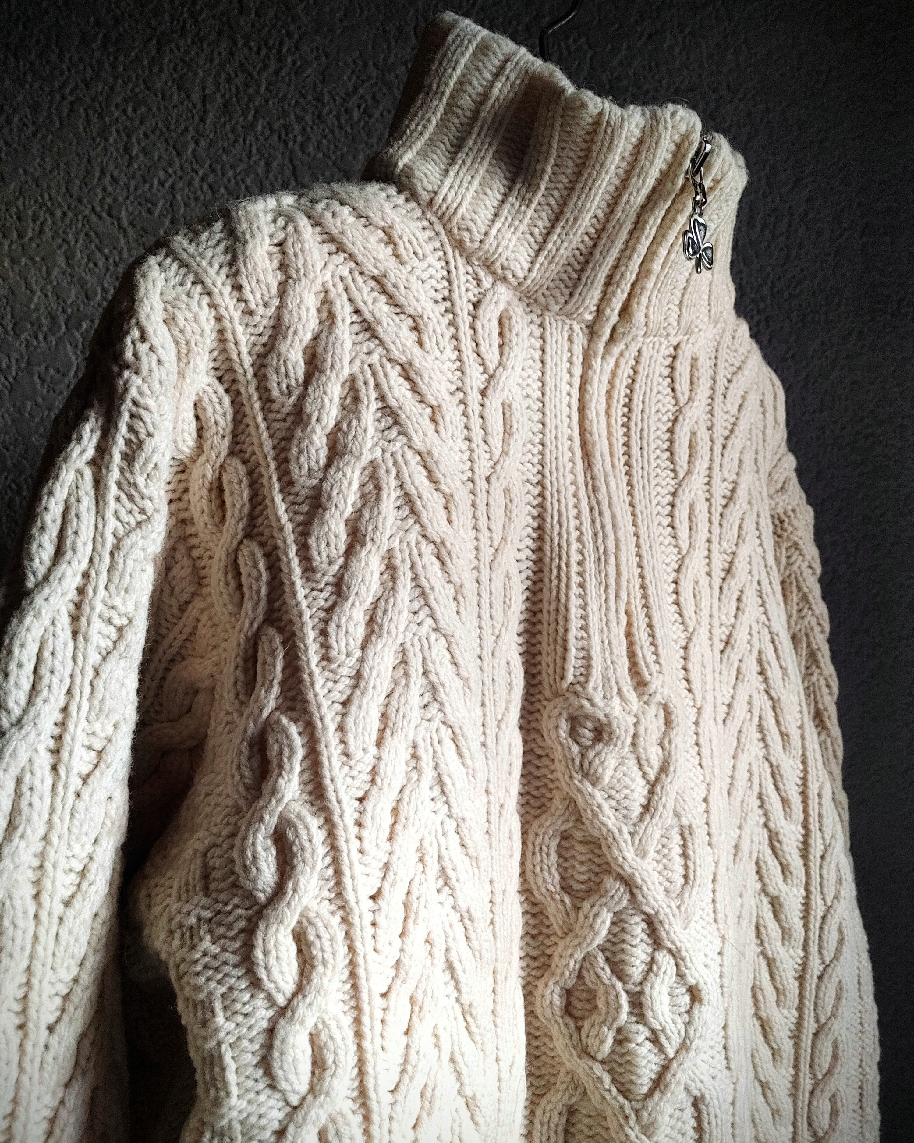 aran crafts フィッシャーマン ジップアップ セーター メリノウール アイルランド製 レディース 古着 ビンテージ